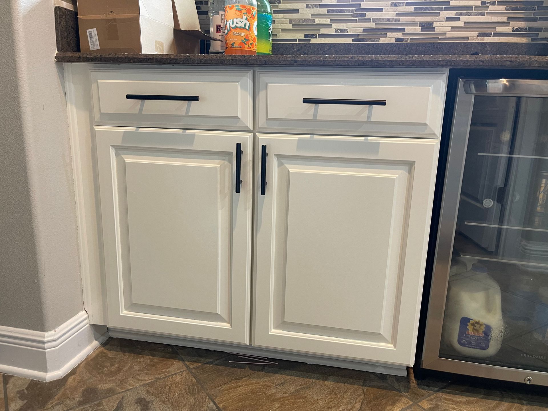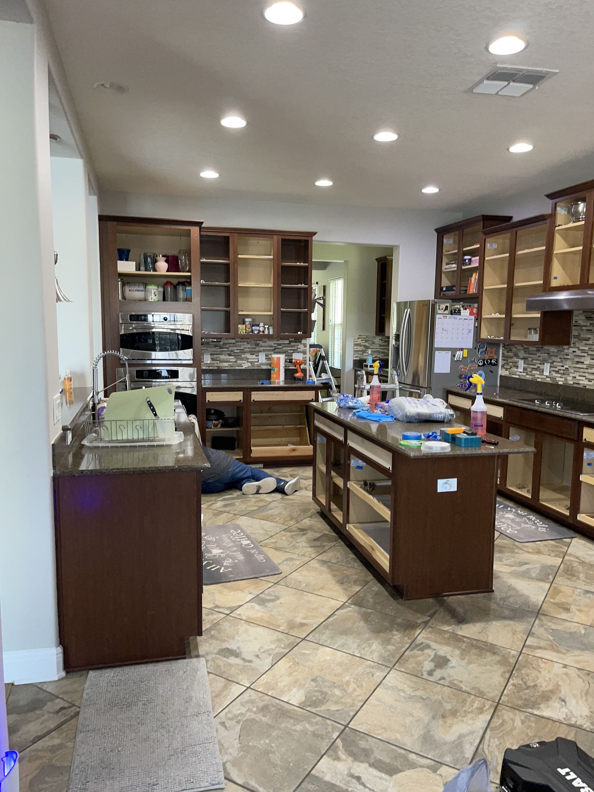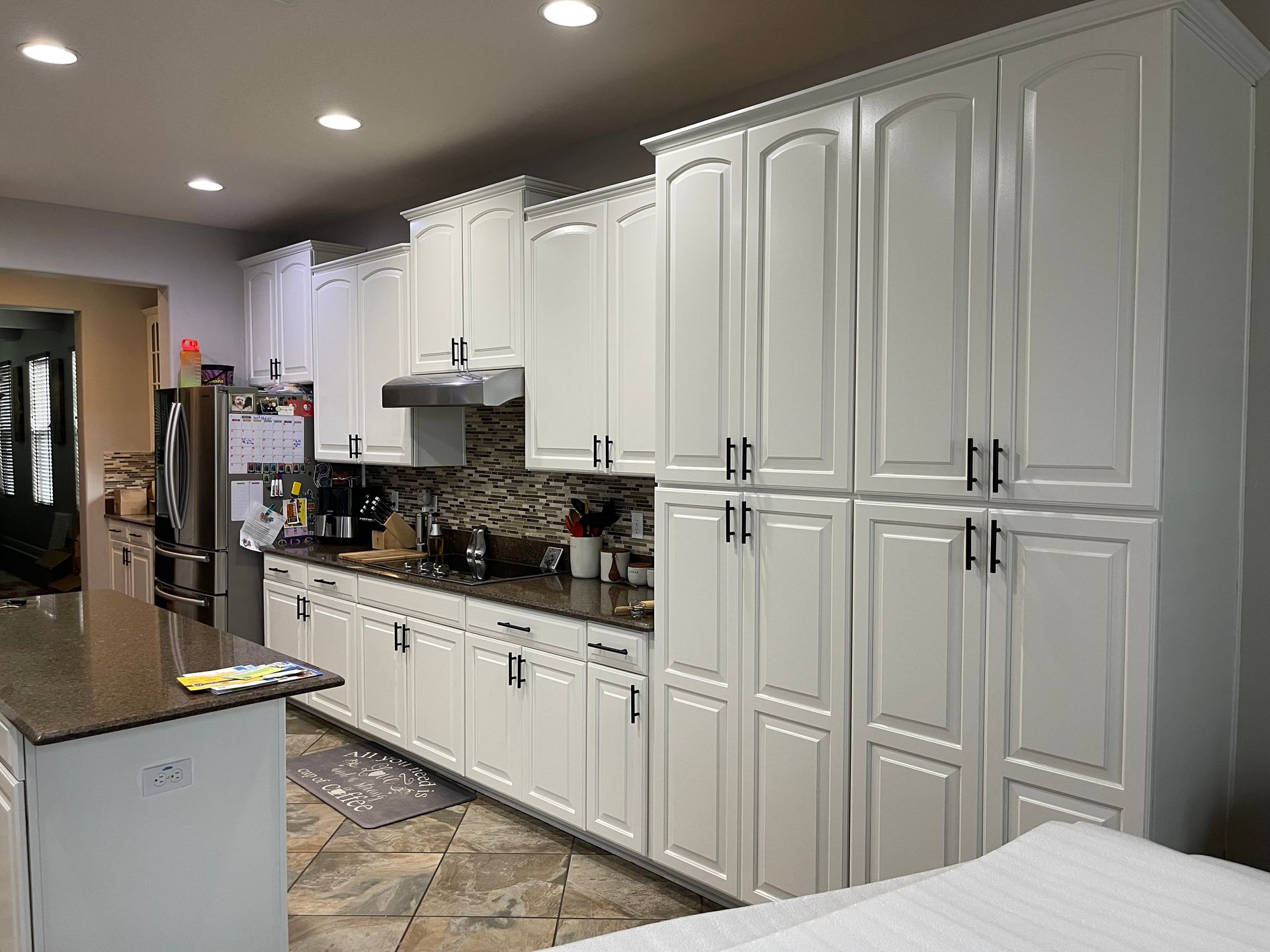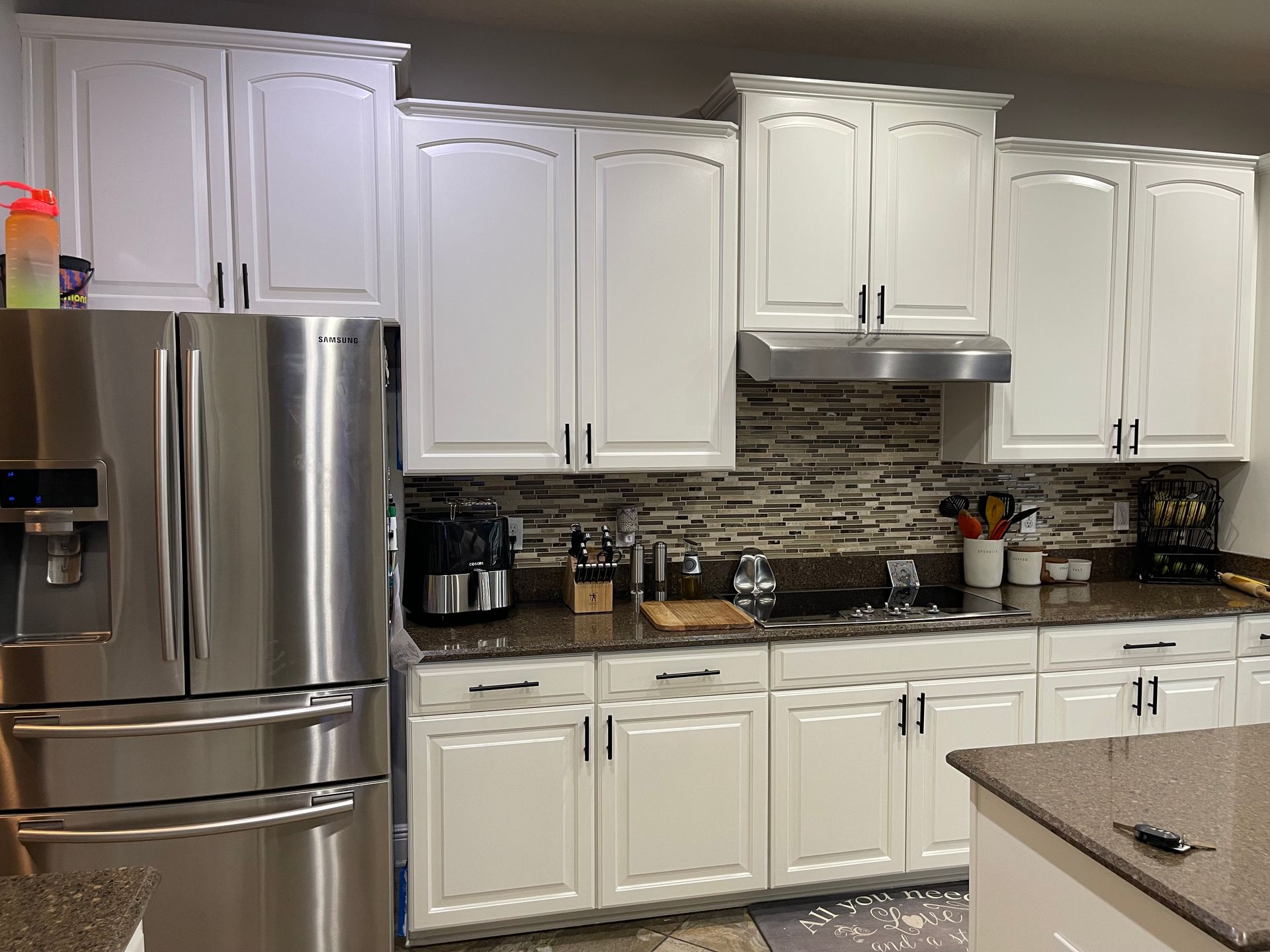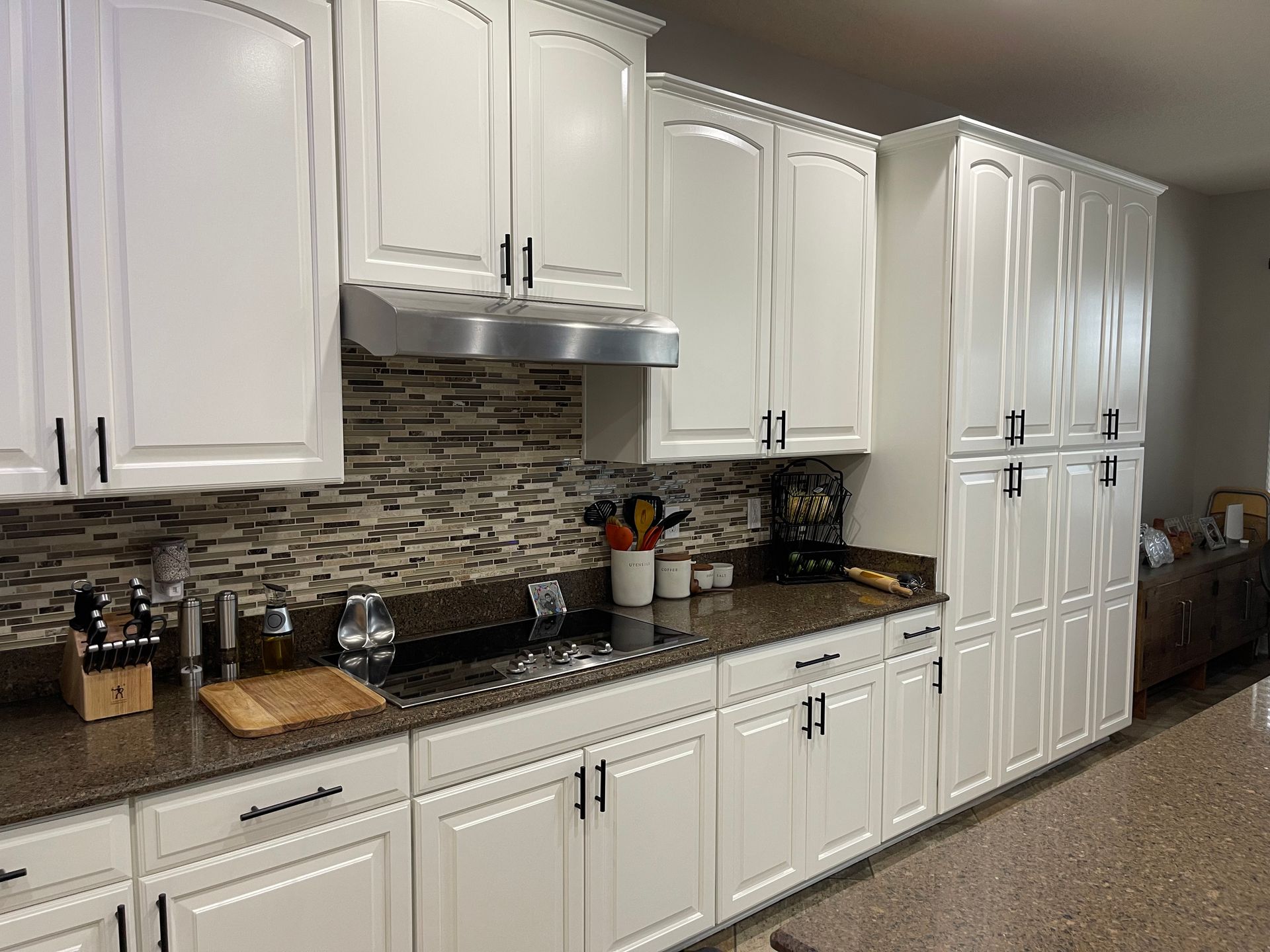 We're thrilled with this transformation! Despite needing to prime twice due to the original dark color, the results were well worth it! The kitchen now boasts a fresh new look and atmosphere, leaving our customer delighted! And let's not forget - we also worked our magic in all the bathrooms!