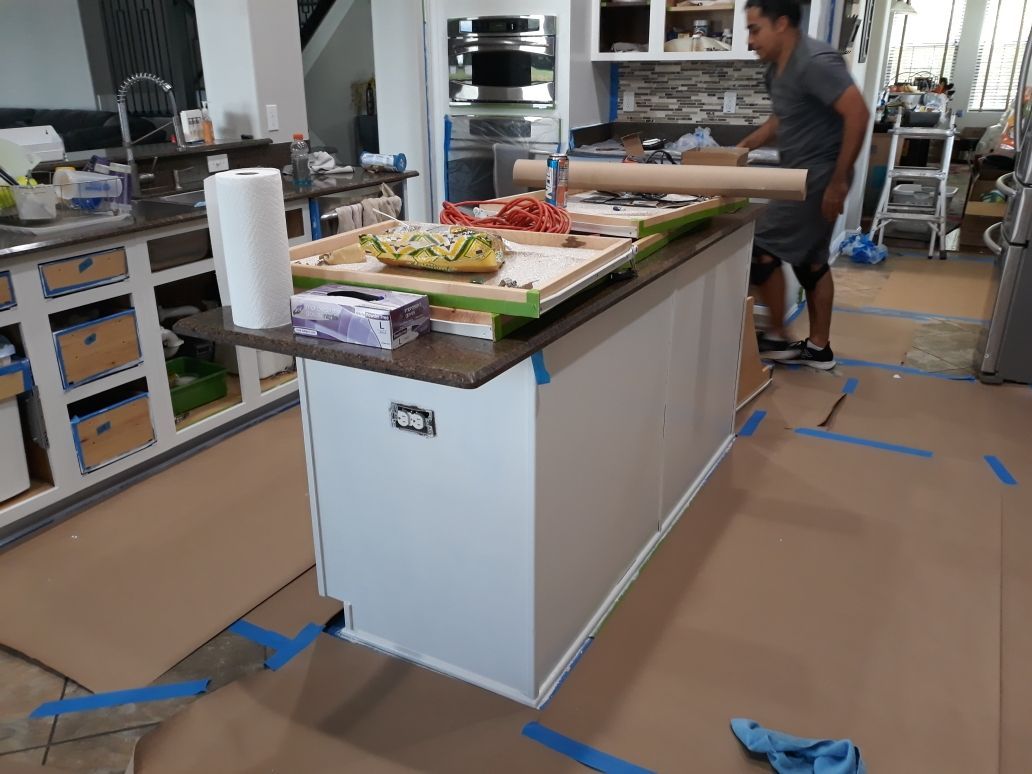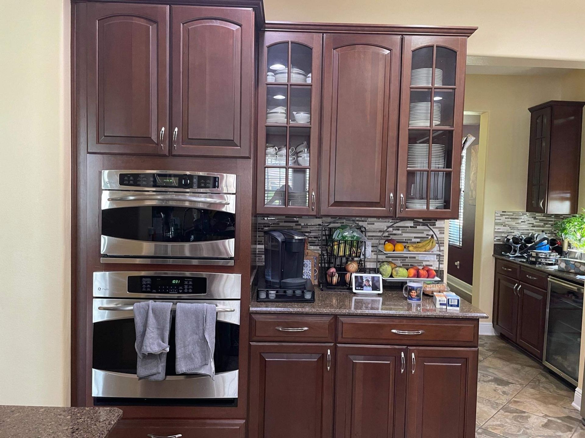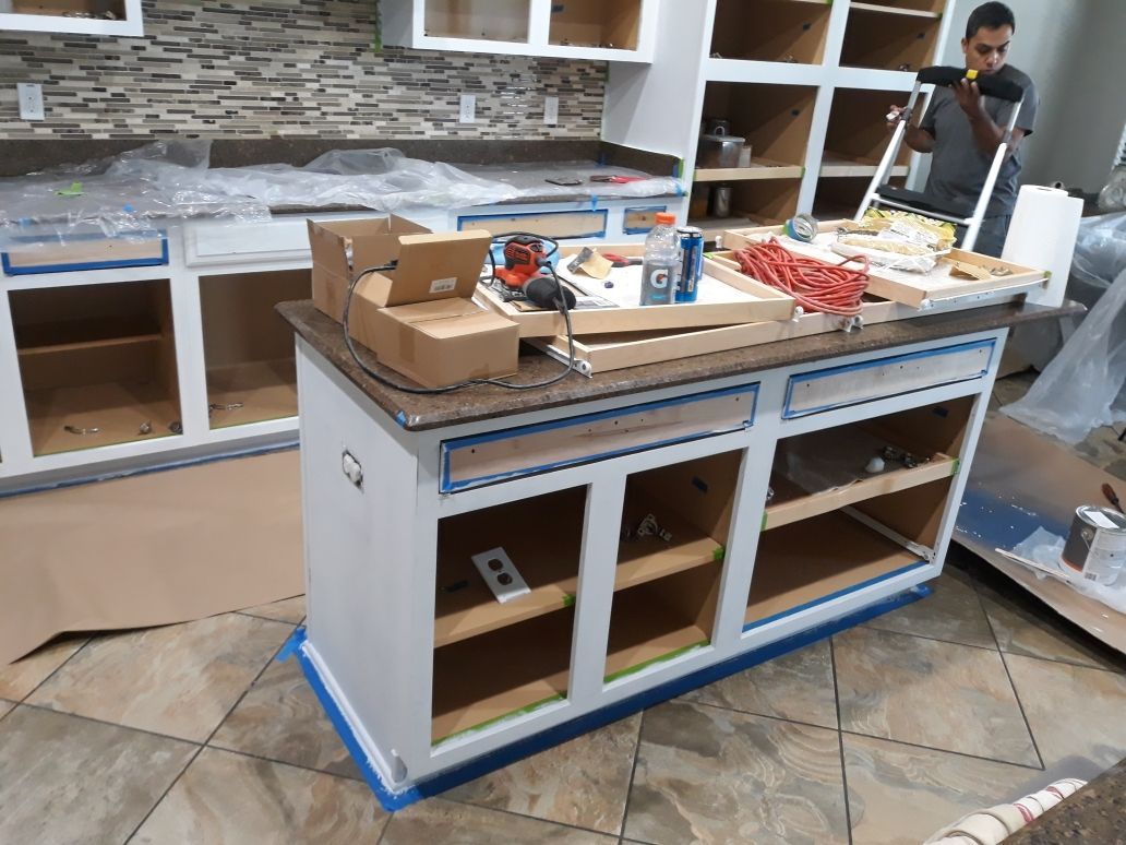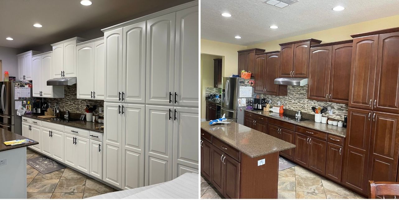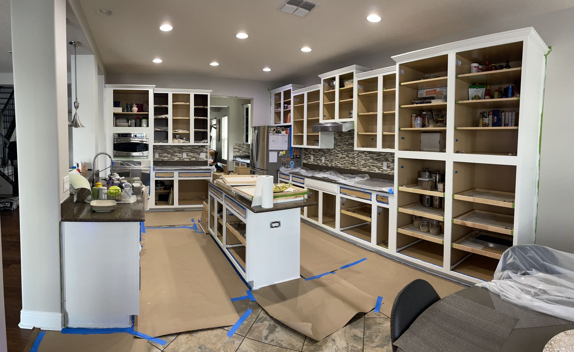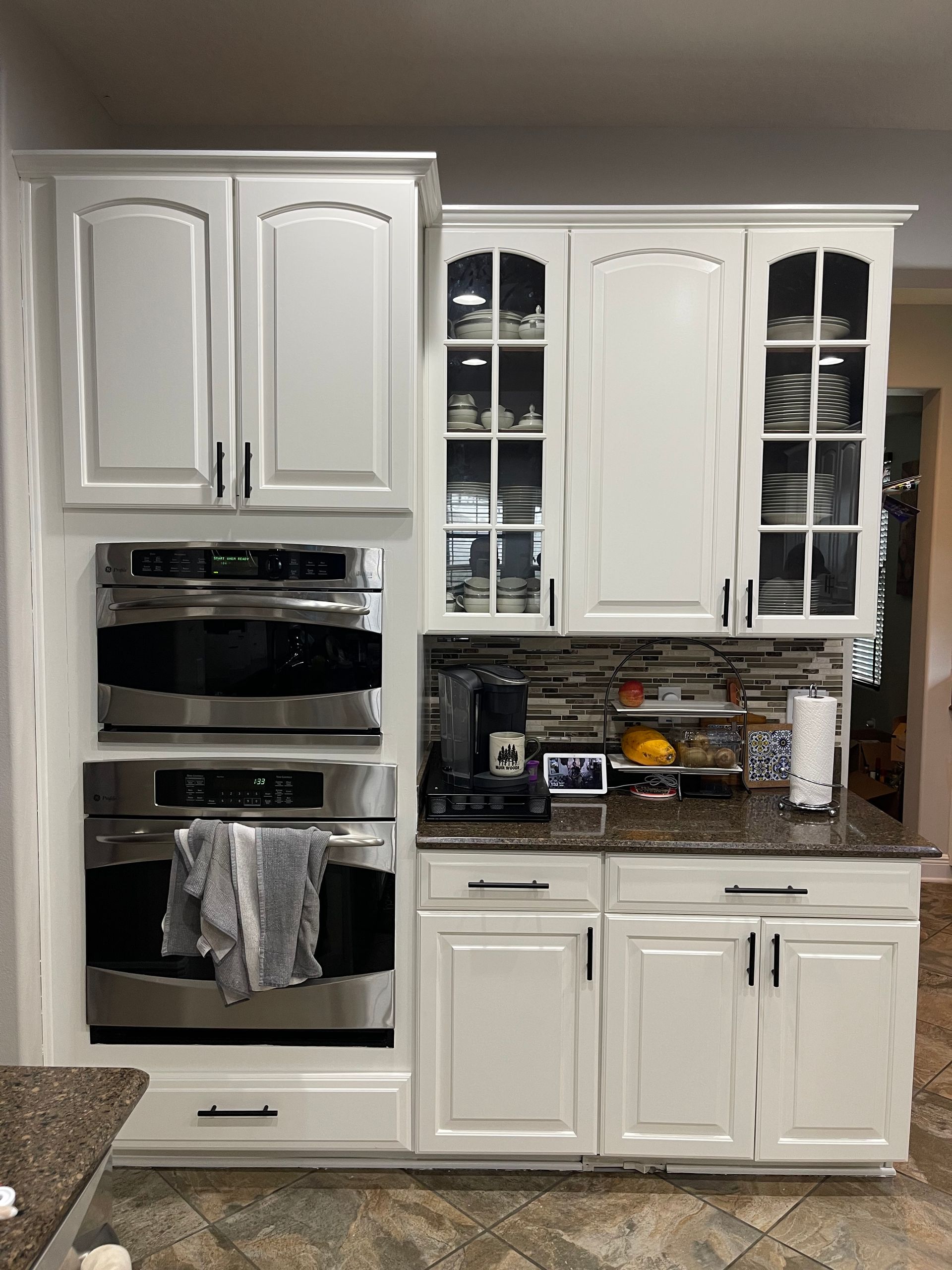 We're thrilled with this transformation! Despite needing to prime twice due to the original dark color, the results were well worth it! The kitchen now boasts a fresh new look and atmosphere, leaving our customer delighted! And let's not forget - we also worked our magic in all the bathrooms!