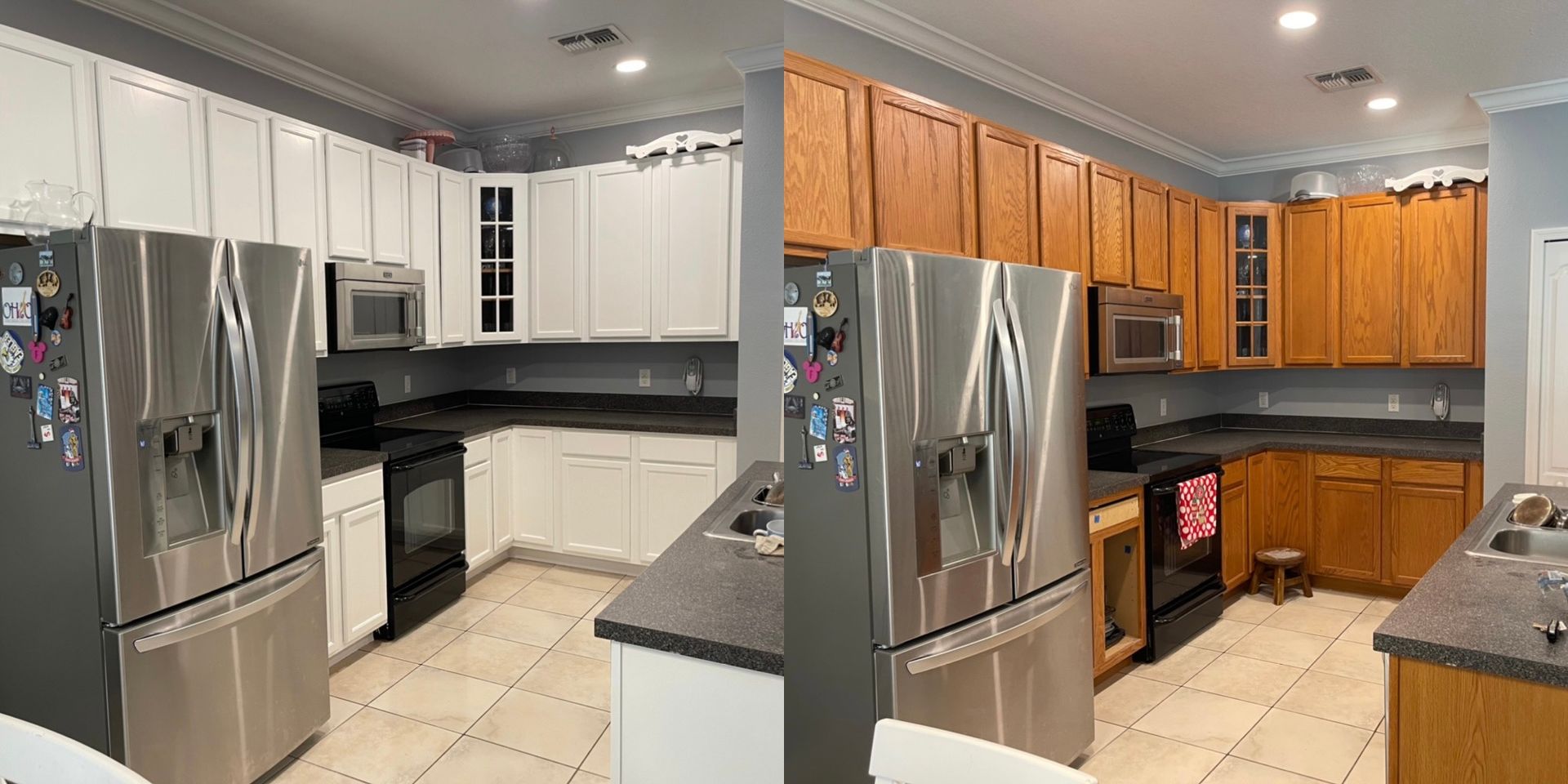 Regarding the cabinets, the strong grains were noticeable. We discussed this with the client, and they were completely fine with the natural grains showing through. While covering the grains is a meticulous and costly process, we went above and beyond to deliver exceptional results without any additional charges. And boy, did we exceed expectations!